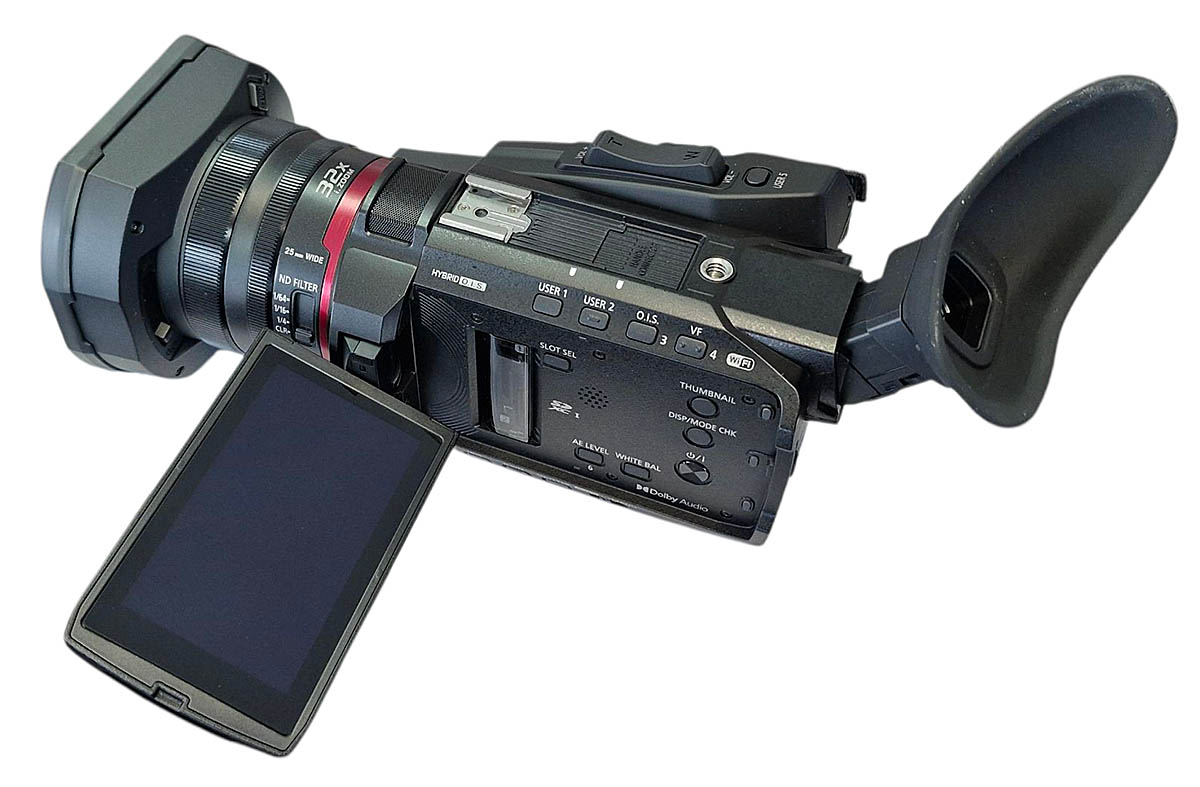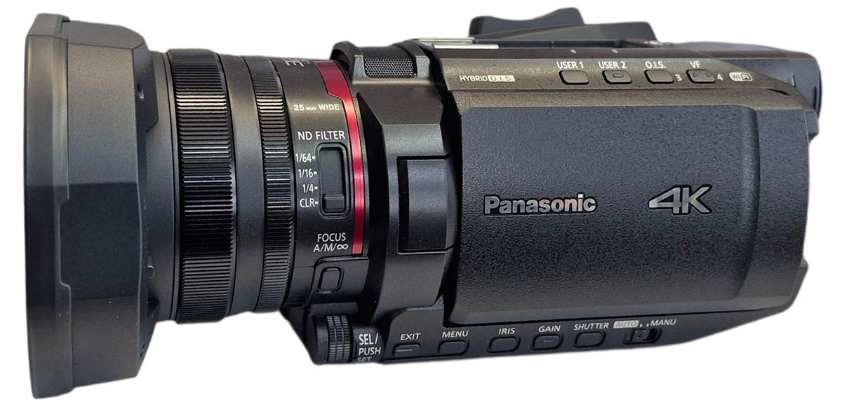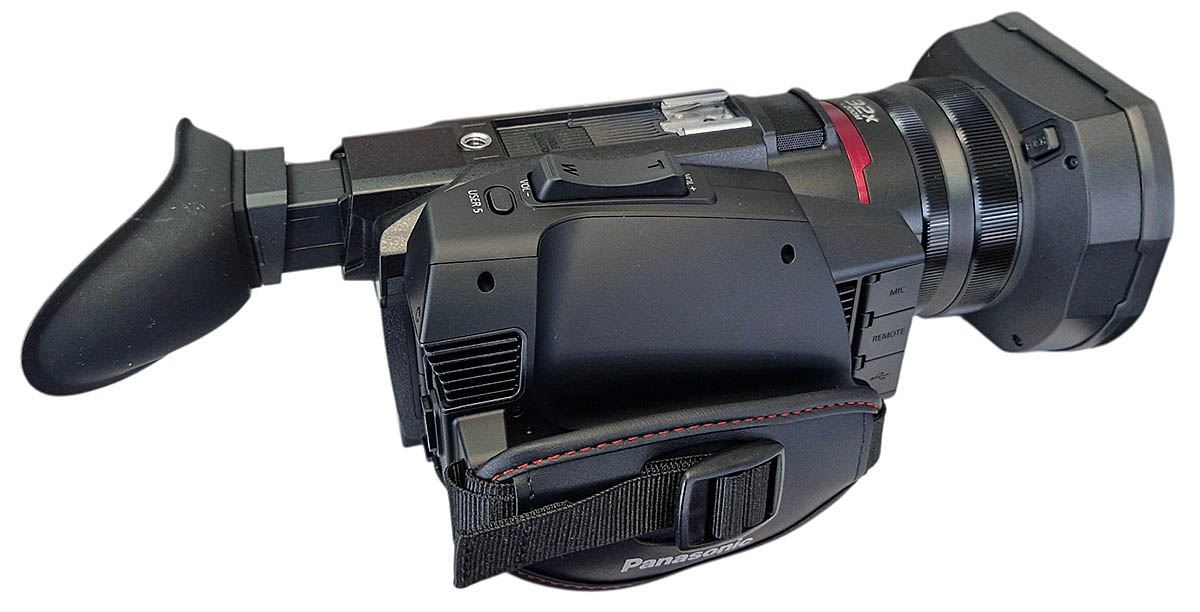 Panasonic HC-X1600 v detailním pohledu z levoboku...