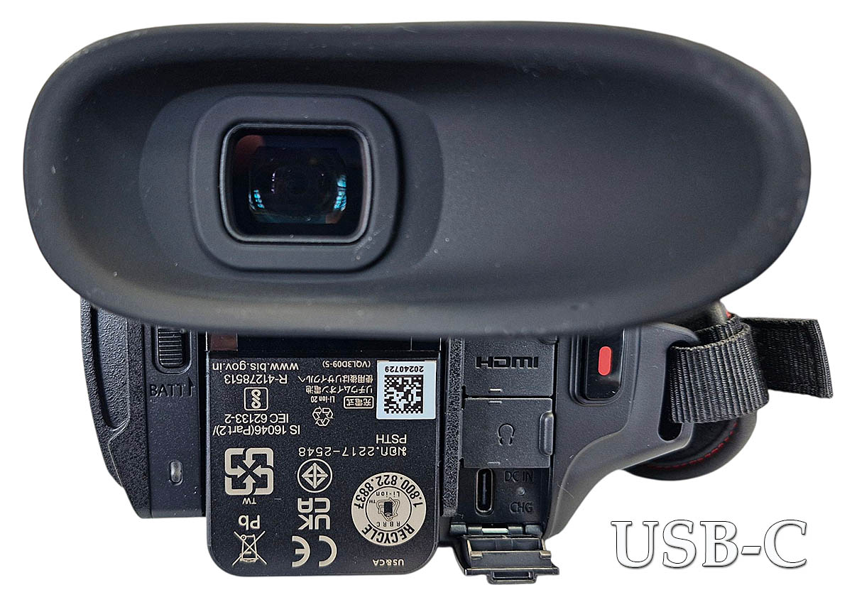 Třetím z hlavních rozdílů je zdířka k nabíjení a napájení USB-C, což ale pro firmu Panasonic znamená dobrý důvod Názorný detail: USB-C zdířka k napájení i nabíjení strojeke škudlení. Japonští soudruzi zjevně předpokládají, že každý uživatel, který si dovolí pořídit takovou modernu, MUSÍ MÍT nabíječku na mobil či tablet a tady ji jasně použije. Polopatisticky: rozříznu izolepu na krabici, vyjmu první výlisek- tam je Videokamera a okolo NIC. Jdu pod výlisek se strojem a tam je POUZE očnice v pytlíčku a akumulátor. To se mi snad zdá: Japonec nakonec, velký Lakomec: nedal ani nabíječku (pomož si sám), OU...! No nic, objednali jsme obratem ručky čili madla k pohodlnému nošení, hornímu ovládání (a spodní náhledy + světlo s regulací) a to už nechám do hlavní recenze. Ostatně: v jiné objednávce jsou i akumulátory, externí nabíječky a SD-karty pro náš BALÍČEK…