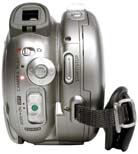 Pohled na videokameru Canon HR10 zprava (Kliknutí zvětší)Konečně se dostáváme k samotné práci s kamerou. Předně bych tu chtěl poznamenat, že mojí poměrně velké ruce je držení i ovládání veskrze příjemné a osobně dávám ergonomii i přes drobné výhrady výše k hledáčku známku Výborně. Ovládání mi padne dobře do ruky a ani pravičky ostatních členů našeho kolektivu si ostatně nestěžovaly. Po zapnutí kamery a vložení prázdného disku se nejprve kamera zeptá, do jaké že to podoby chce uživatel disk naformovat. Zvolit tady lze buď HD nebo SD podle požadovaného rozlišení. SD-mód se ještě dělí na VIDEO a VR, přičemž video by mělo mít kompatibilnější formát s externími zařízeními, ale v druhém módu VR - pokud zapisujeme na DVD-RW - můžeme v kameře klipy ještě dále upravovat. Poté co si vybereme mezi patřičnými zkratkami, proběhne tzv. inicializace disku. Dále už můžeme běžně a pohodově bez odchylek od jiných systémů nahrávat scény jednu za druhou, prohlížet v přehrávacím módu, fotit na kartu atd. Trpělivost po každém vložení média do plné pohotovosti k záznamu je požadována podobně jako i u ostatních modelů na tyto elegantní 8cm-kotoučky…