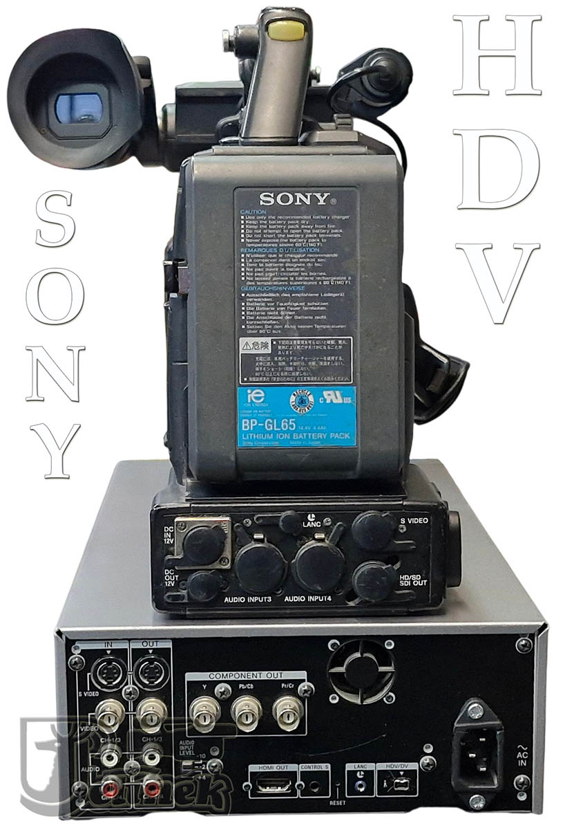 BOMBASTICKÝ univerzální páskový DV-rekordér Sony HVR-M25U má přehršle hejblátek na přední straně šasi a IMPOZANTNÍ duo PROFESIONÁLNÍCH MAŠIN HDV-videavšechny možné zdířky na „Zadečku“. Odezírejme ze snímků, že HDMI nebo Fire-Wire zde MÁME, LANC coby ovládání kabelem také, analogové a digitální vstupy i výstupy jakbysmet. Pomineme-li, že si uživatel musel sehnat tzv. BNC-konektory (redukce) a „držet Basu“ s pradávnými způsoby AV-spojení, symbióza s výše představenou kamerou je příkladná. DIGITALIZACE všech záznamů na zmíněných čtvrtpalcových páskách je mj. díky náhledovému 2,5“ monitoru pod nakládací škvírou kazetových mechanik pod kontrolou. Neboli: obsluha nemusí přepínat při práci v počítači na velký PC-monitor SW, stačí kuk na displej…